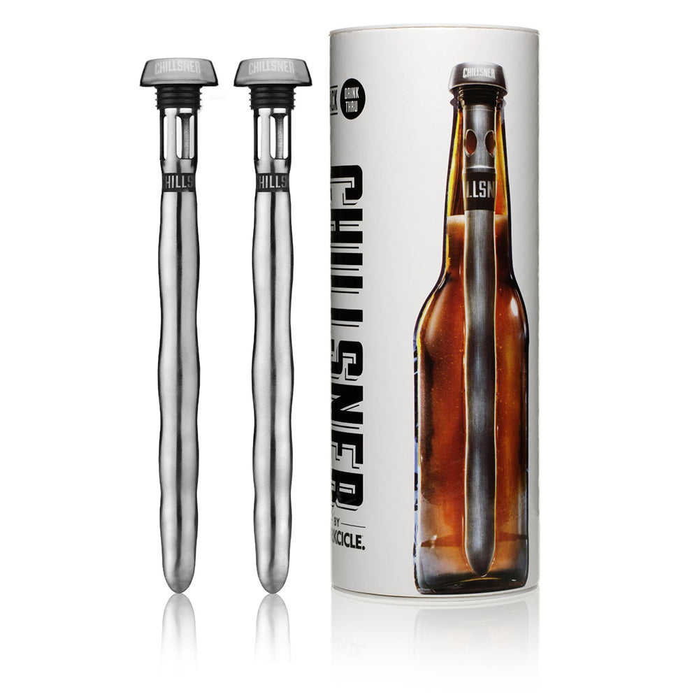 ¡Frío hasta el ultimo trago! El Chillsner de Corkcicle por partida doble! . Solo congélalo, introdúcelo en tu botella de cerveza tradicional de 355ml y olvida los días de lidiar con una cerveza tibia.