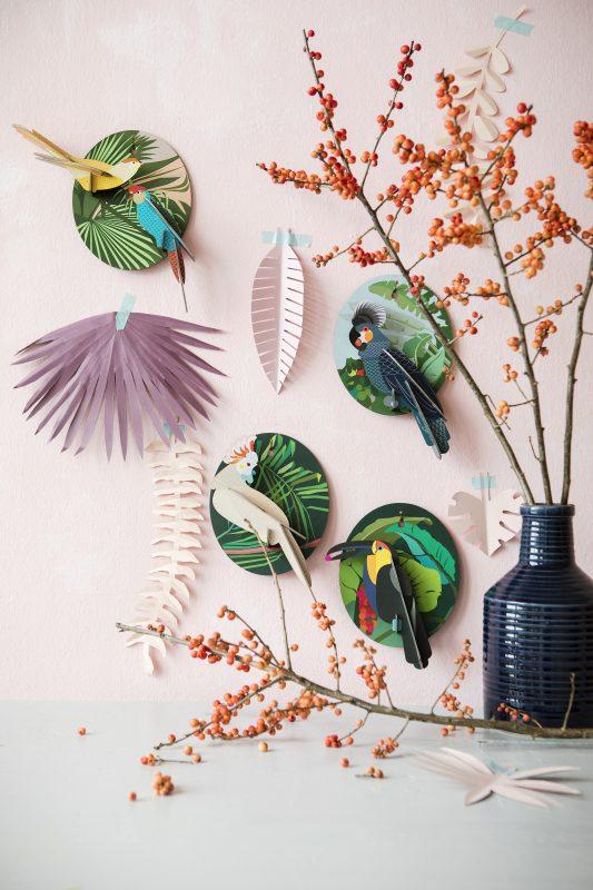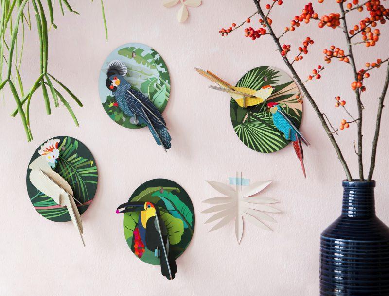 Te parecerá que han llegado volando directamente desde la selva para posarse en la pared de tu casa. Podrás montar y colgar en la pared esta exótica ave hecha de cartón reciclado en un abrir y cerrar de ojos.