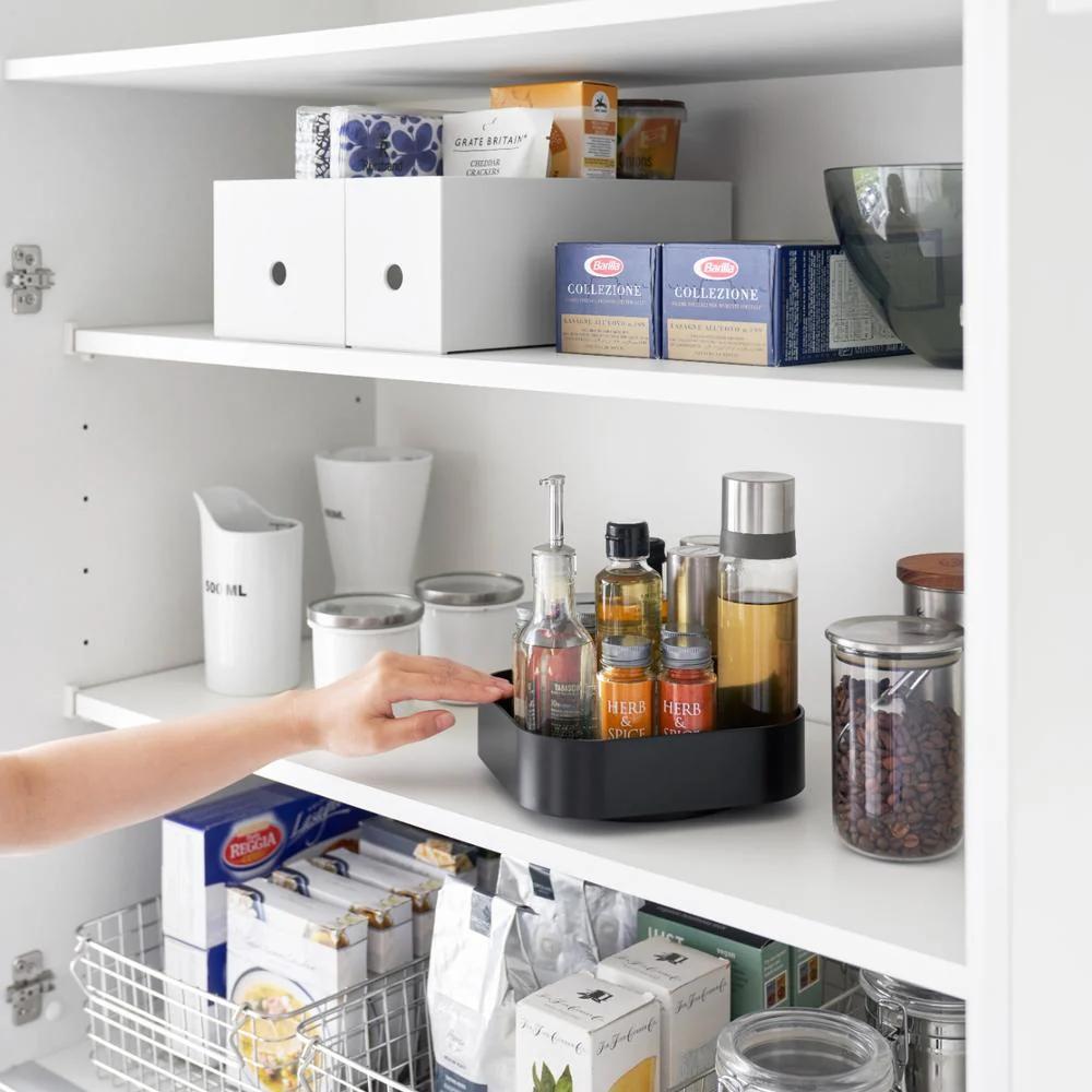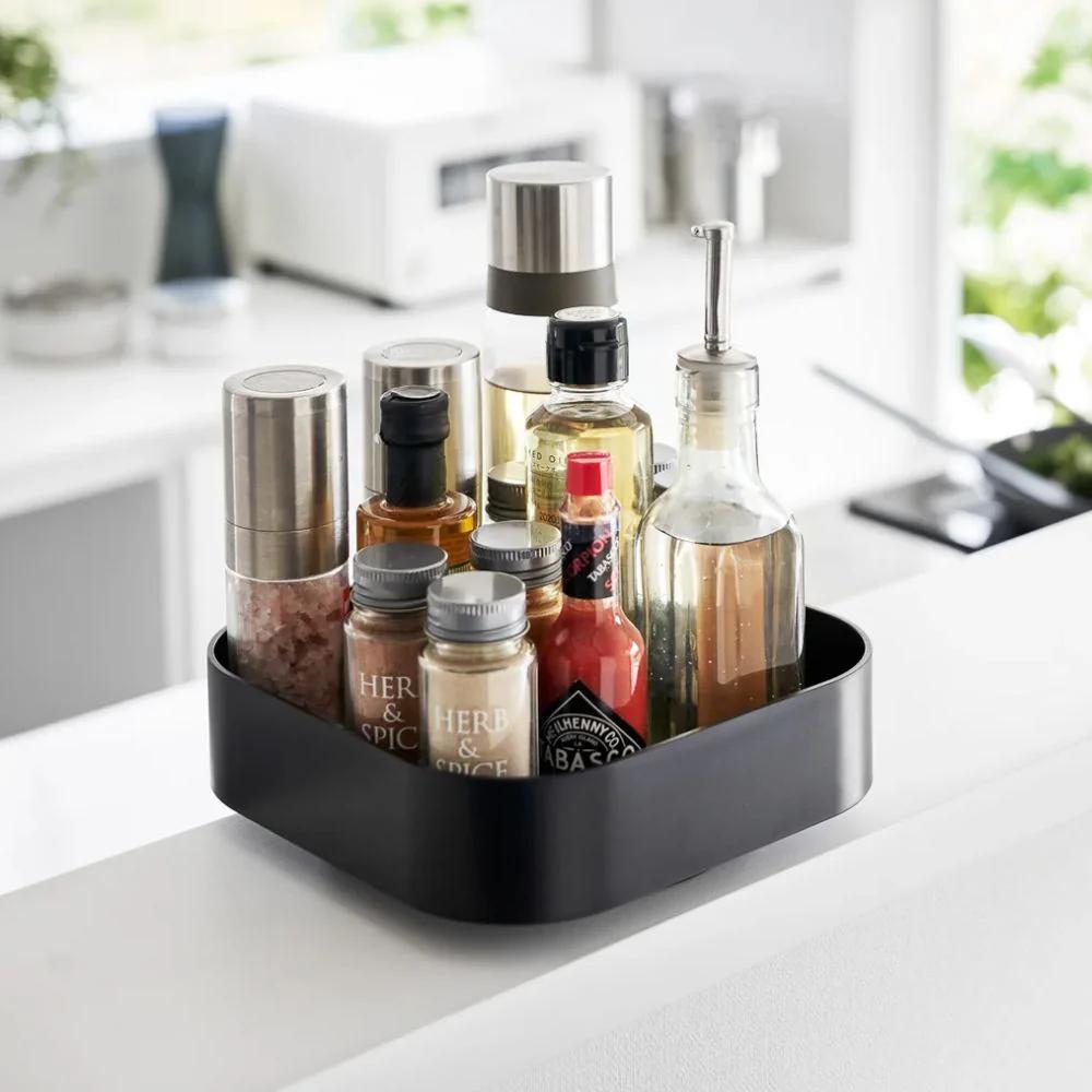 Organización accesible desde cualquier ángulo.Esta bandeja giratoria es la solución perfecta para organizar diversos artículos del hogar, como ingredientes o productos de baño. Su diseño práctico permite un acceso fácil desde cualquier lado, garantizando comodidad y orden.Gira suavemente incluso con objetos pesados, facilitando su alcance. Cuenta con una base antideslizante que mantiene la estabilidad mientras gira.