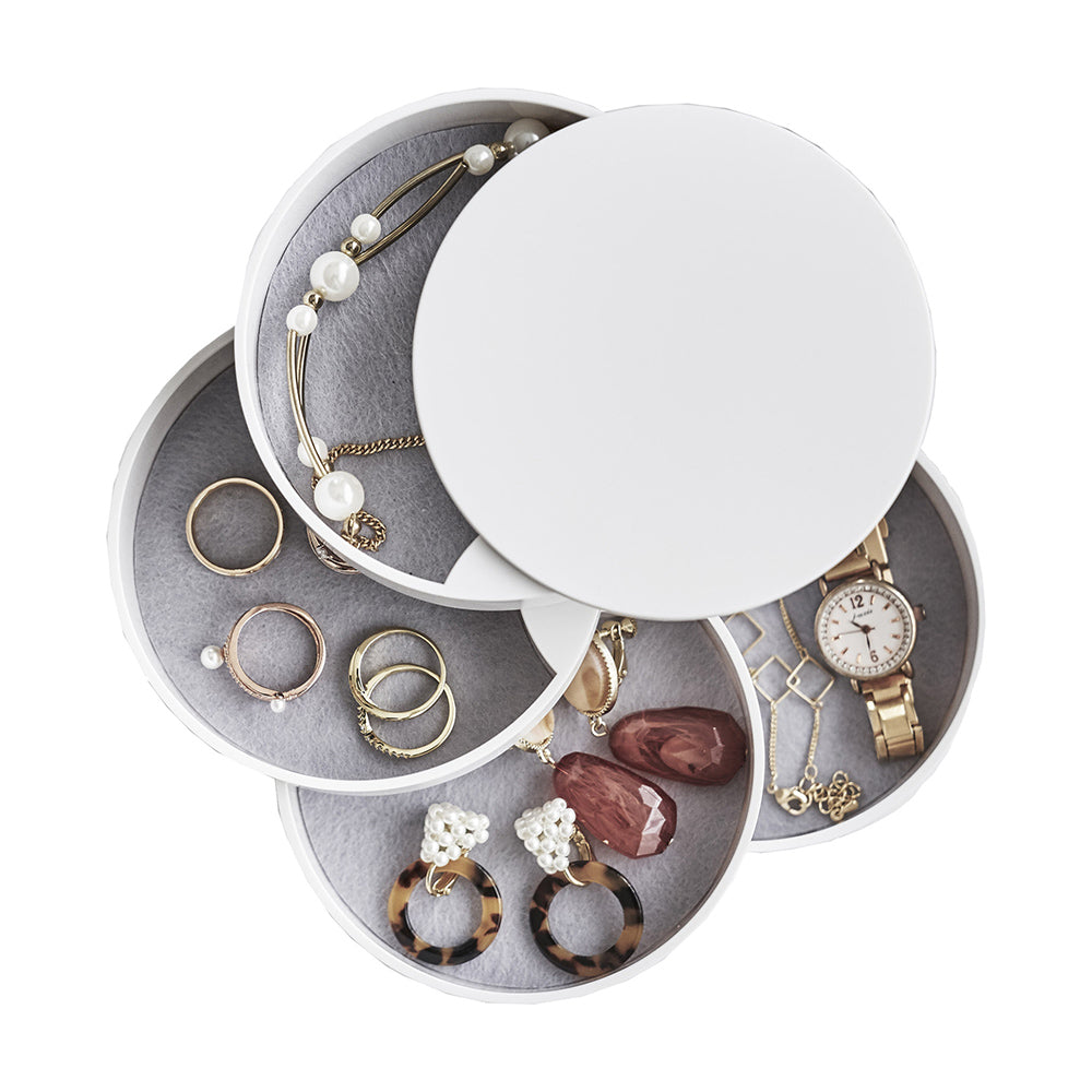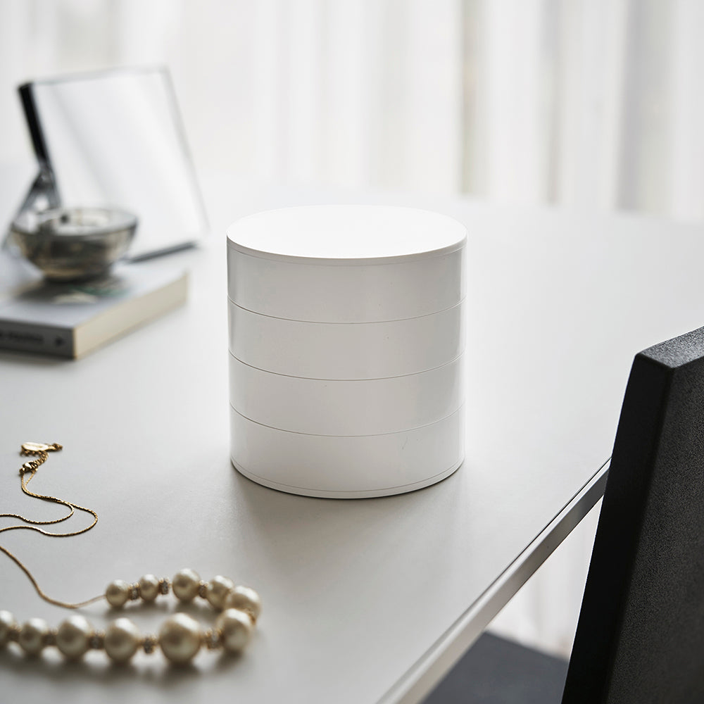 Esta caja ofrece almacenamiento para artículos pequeños y joyas, con 4 bandejas forradas de fieltro para una organización segura. Cada bandeja se puede girar para acceder a ellas o exhibirlas, y su tapa protege el contenido del polvo.Organiza tus accesorios con nuestra caja de joyería y accesorios apilable de 4 niveles para aros , anillos, collares y mucho más. ¡Mantenlos protegidos y listos para lucir!Olvídate de que se enreden o se pierdan.