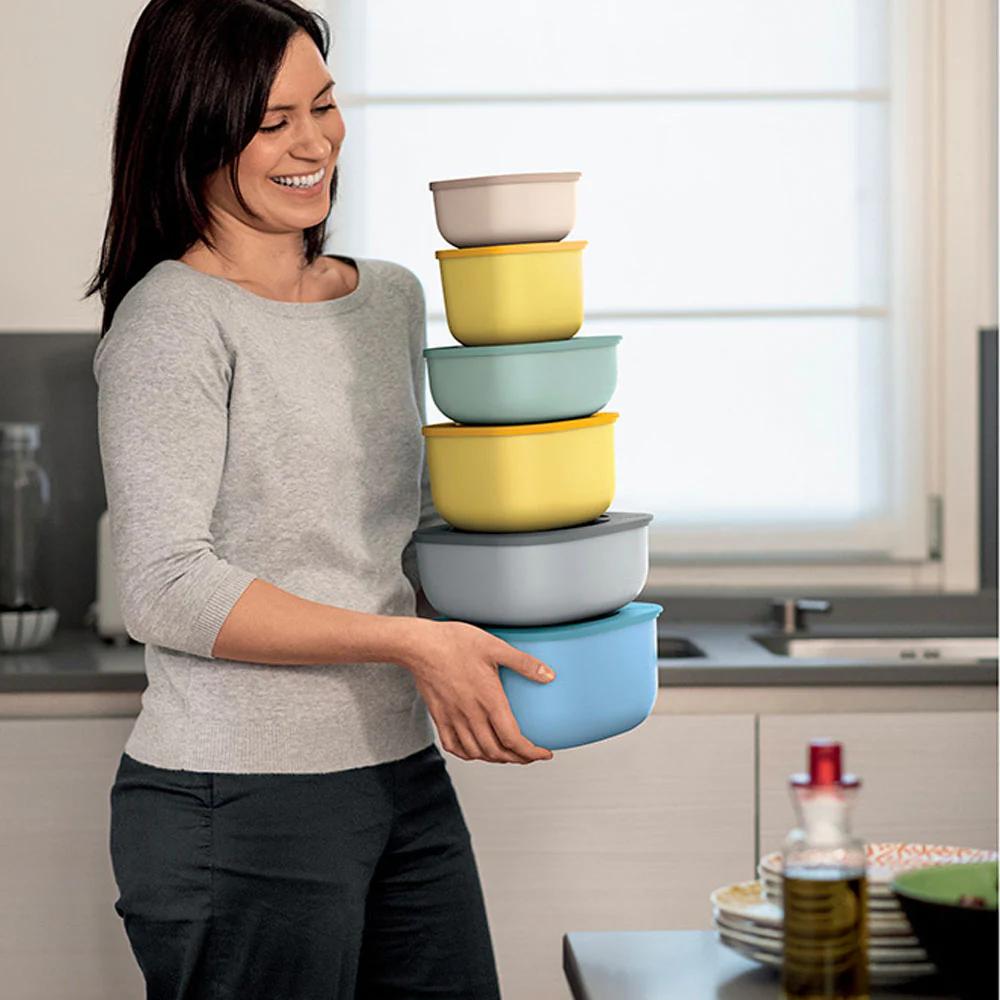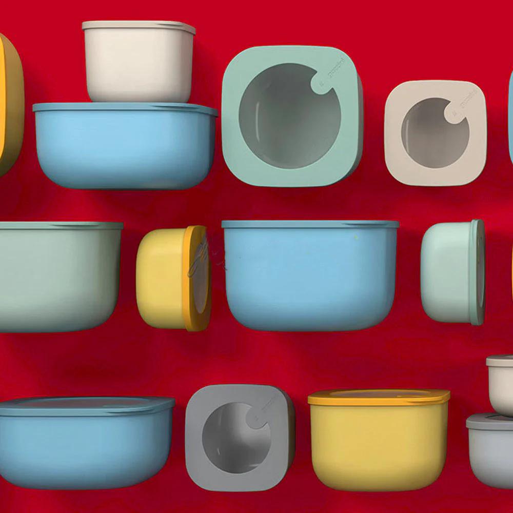 Los recipientes para alimentos deben ser prácticos y duraderos. ¿Y si ellos también bellos? Los contenedores Store&More de Guzzini es una colección sencilla pero bien pensada de recipientes para alimentos perfectos para tu cocina, oficina o mesa. La idea de crear un contenedor en forma de cubo con esquinas suaves y aerodinámicas pertenece al estudio de diseño Spalvieri & Del Ciotto. Los recipientes están hechos de materiales resistentes al calor y a los arañazos y también son aptos para lavavajillas. Store&More, además de practicidad, tiene una estética moderna con elegantes combinaciones de colores. El contenedor de alimentos Store&More es adecuado para uso en interiores y exteriores. Están diseñados para almacenar alimentos en un refrigerador o congelador, calentar en microondas, transportar y servir. Para la fabricación de contenedores, los artesanos utilizan polipropileno ecológico de alta rigidez. El recipiente es resistente a los ácidos alimentarios y a los cambios bruscos de temperatura. La tapa sellada hecha de caucho termoplástico se fija de forma segura y evita que los alimentos se derramen, lo cual es importante para un transporte seguro. El recipiente se puede lavar en lavavajillas.