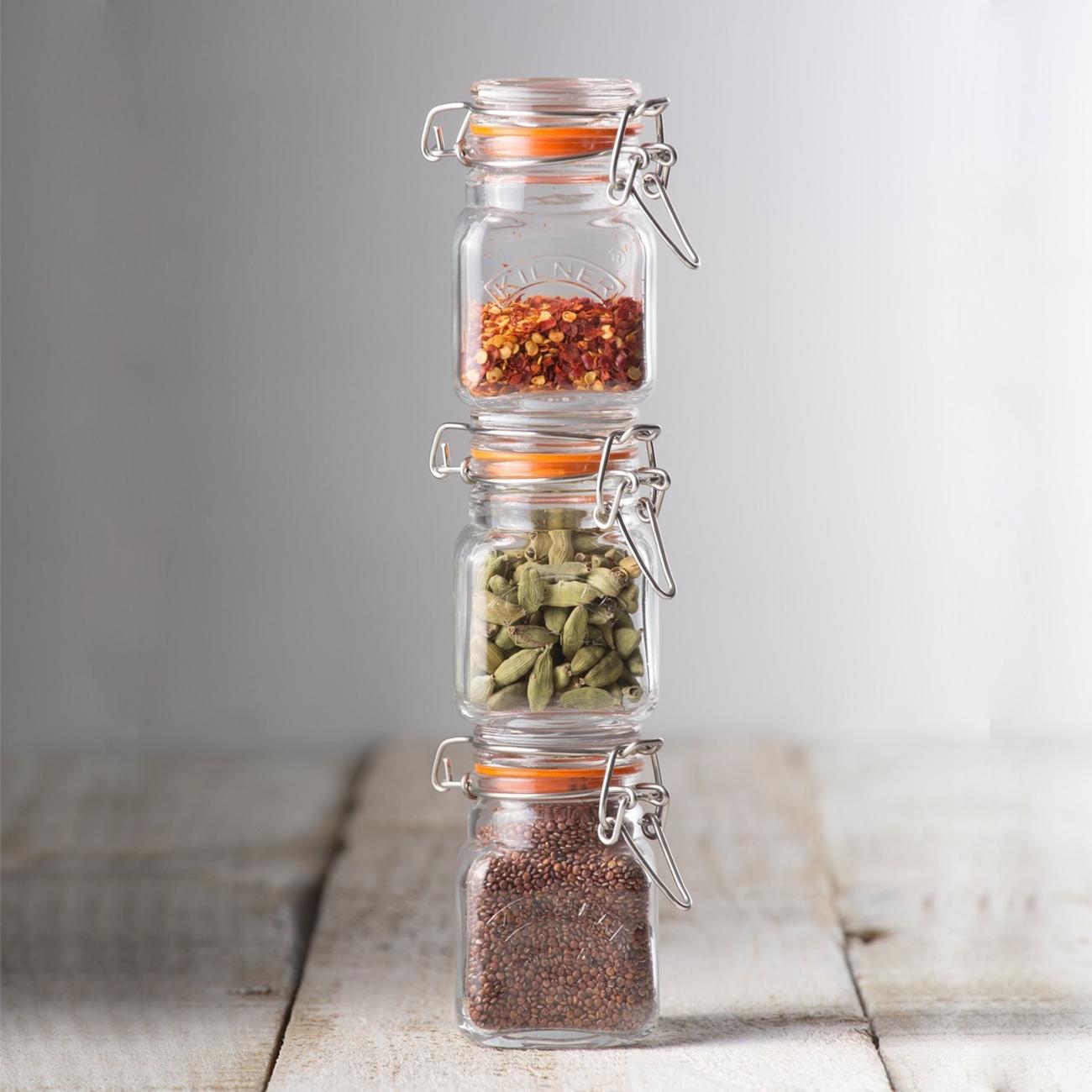 El frasco cuadrado es un ícono moderno de la gama tradicional de frascos para almacenar sano de Kilner. Este Frasco con Cierre Clip 70ml es la forma más linda y práctica de conservar tus preparaciones y cuenta con una banda de silicona de color naranjo que permite un sello a prueba de aire. Úsalo para conservas, salsas, dulces o lo que quieras! Ideal también para salsas de aperitivos, patés, etc.