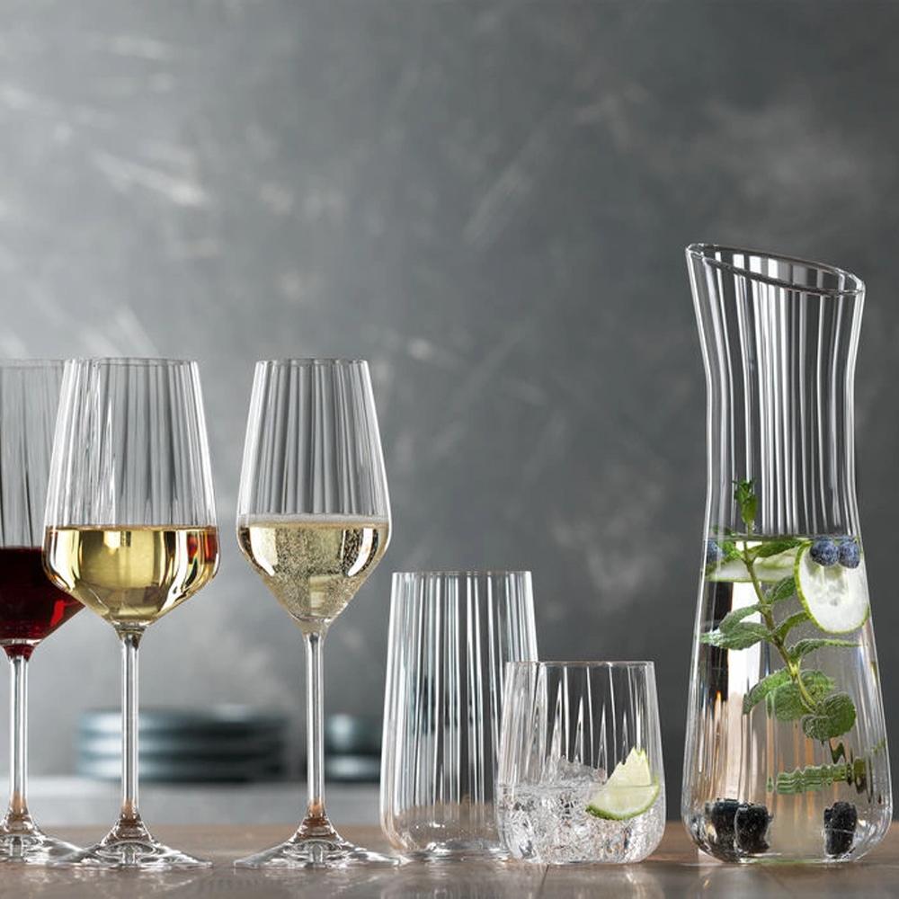 Spiegelau ha creado la serie Lifestyle que es elegante y atemporal, siguiendo la tendencia que esta de moda del cristal óptico. Esta jarra Spiegelau LifeStyle de 1 litro es perfecta para servir una variedad de bebidas, incluida agua, jugo o su cóctel favorito. Un toque de elegancia para cualquier mesa