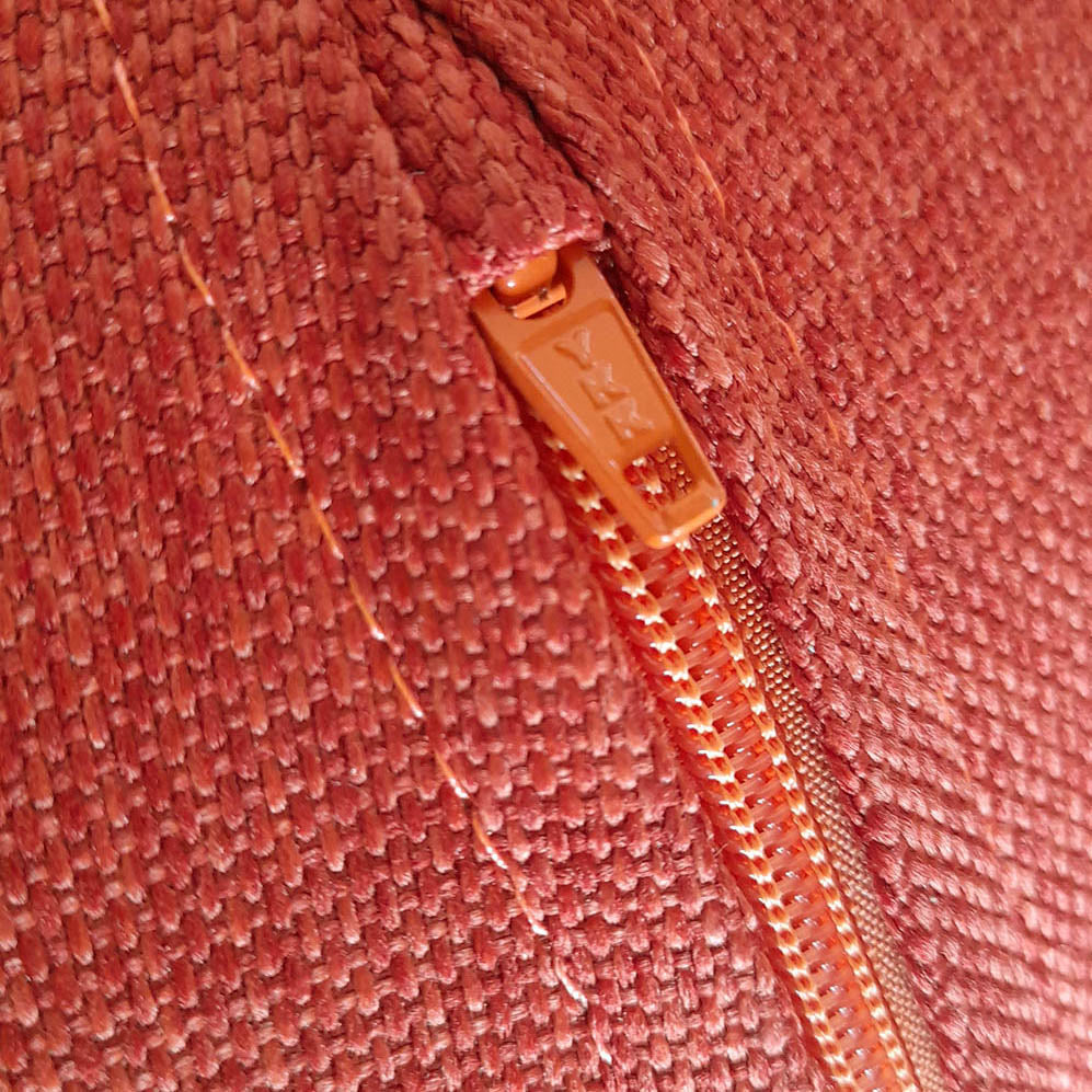 Funda hecha de tela resistente y lavable. Doble costura con hilos tapiceros. Robusto y dimensionalmente estable. Con manilla para facilitar llevarlo con una mano. Cierre de calidad YKK.