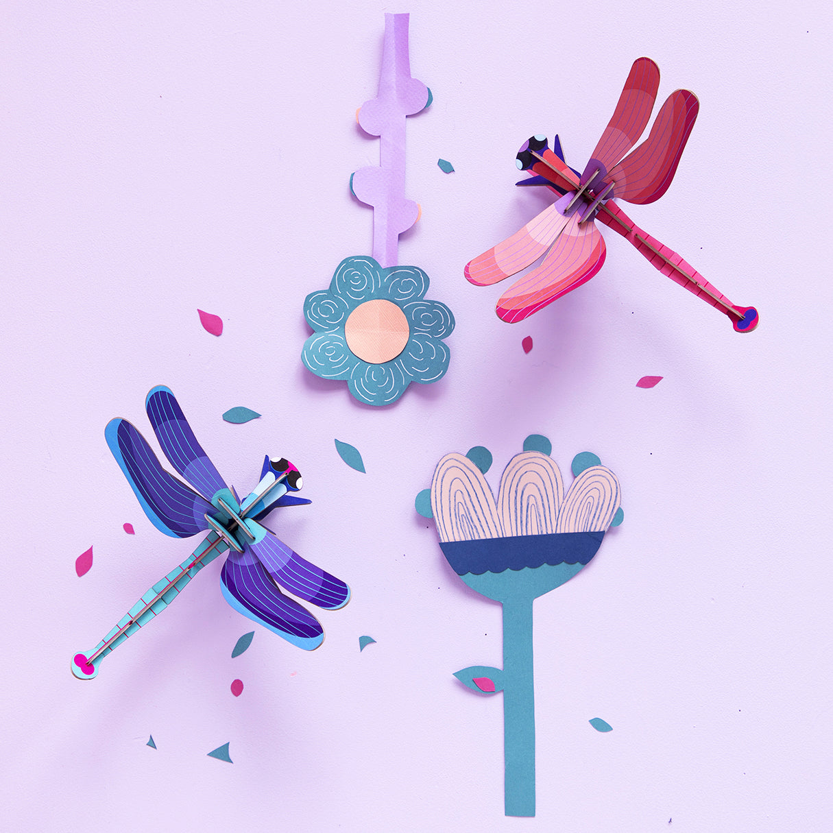Construye la libélula, juega con ella o cuélgala en la pared como decoración.