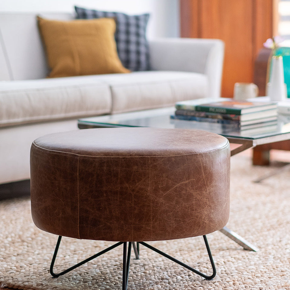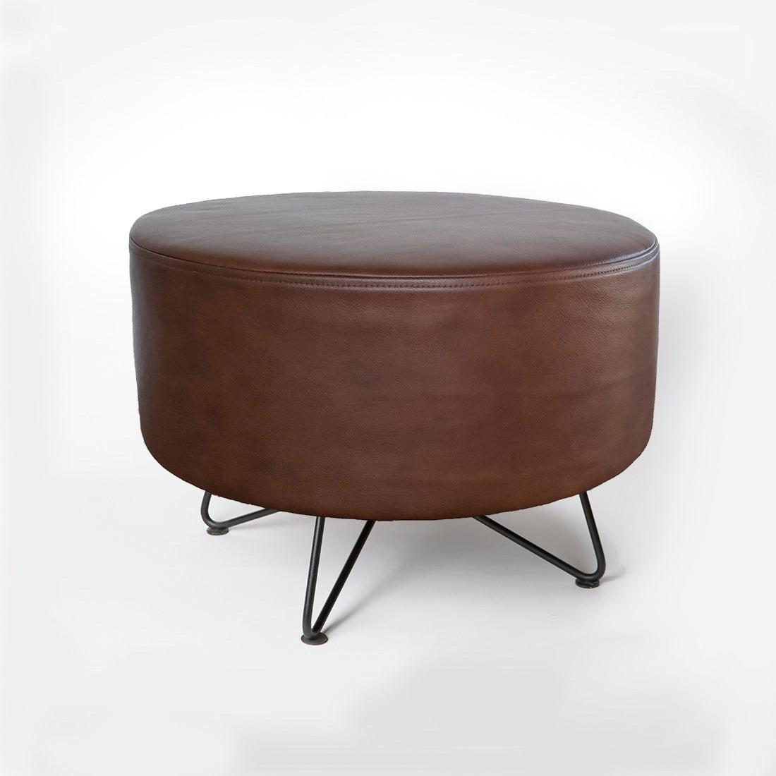 HOKKA del modelo Rudolf sirve como asiento y reposapiés. Mueble sustentable – hecho con un neumático fuera de uso. Tapizado con 100% cuero. Espuma de alta densidad. La base de fierro está electropintado en color negro (diseño original). Todos los materiales para su fabricación fueron elegidos cuidadosamente para entregar un producto de diseño original y de alta calidad.