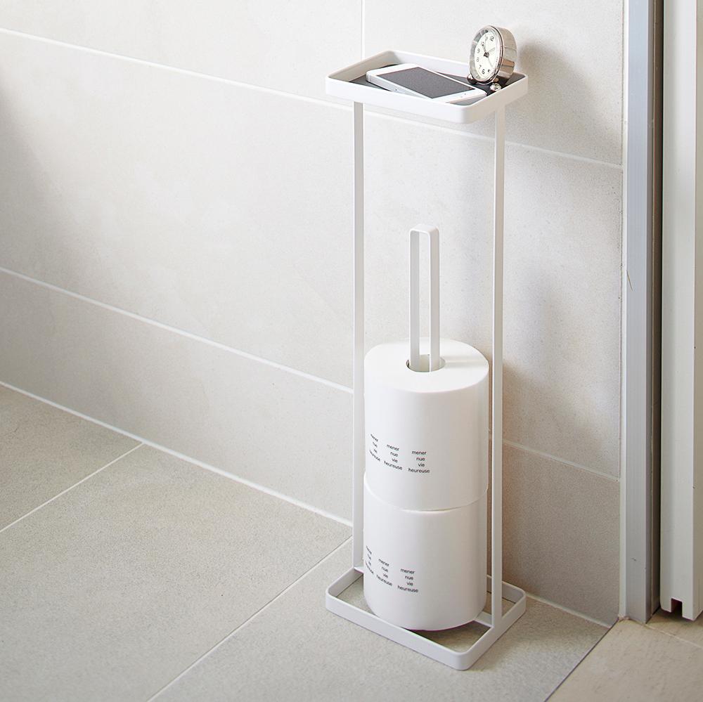 Este porta rollos de papel higiénico presenta un diseño abierto con una barra central que admite hasta tres rollos de papel higiénico. La bandeja superior ofrece un práctico espacio para artículos decorativos, artículos esenciales o incluso para poner su celular, reloj mientras se ducha o está en el baño.Prácticamente no ocupa espacio sin sacrificar su funcionalidad.