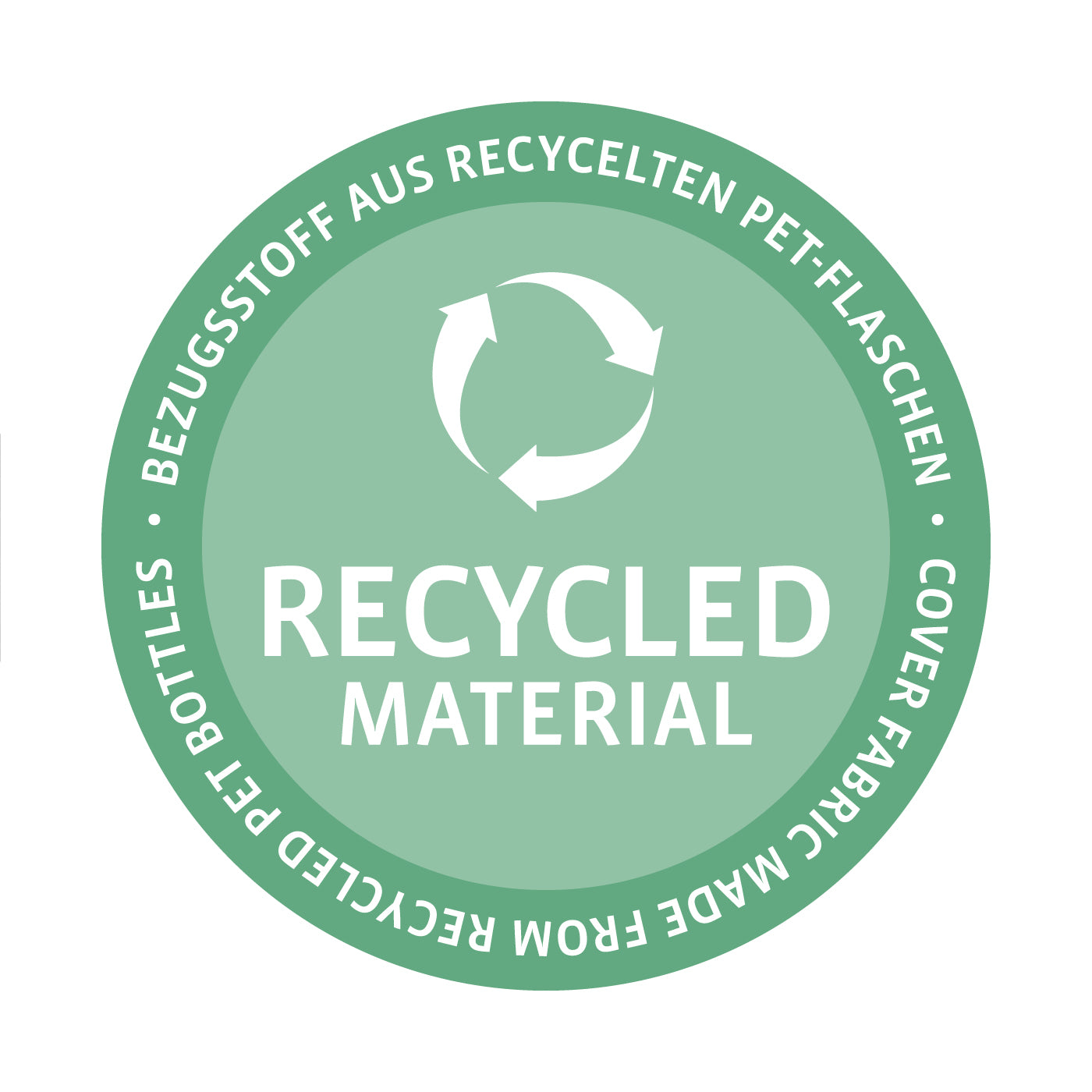 Uso de material resistente y que ahorra recursos, hecho de botellas de PET recicladas para un uso sostenible a largo plazo, repelente al agua y de secado rápido.
